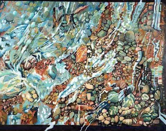 This is the surface of the stream of the River Stour where I live in Warwickshire. I really wish I had made more of this subject matter and produced more pictures at the time. It is difficult to change mind-set and to revert to themes that were developed years ago. I am so absorbed by my station themes at present.
